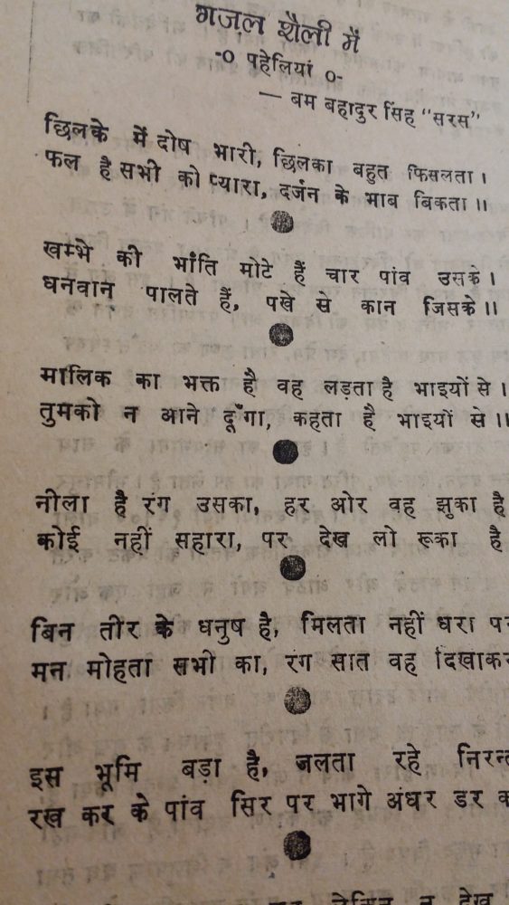 – [ स्व.] बम बहादुर सिंह ‘ सरस ‘